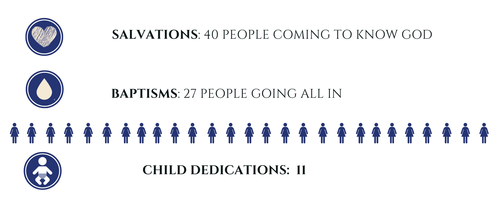 Your cheerful giving impacts eternity for generations, as people find freedom in Christ. Real life change happens best in the context of authentic relationships. Our Small Groups provide a place to connect, pray, and grow in your relationship with Jesus. We averaged 35 groups each season.