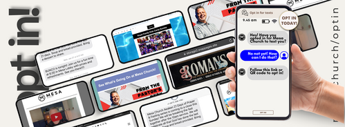 We would LOVE to send you church emails or texts to let you know what events and opportunities we have coming up. Without this opt in however, we can't. Please opt in to both places using the links below so that we can send you upcoming events or pertinent details.